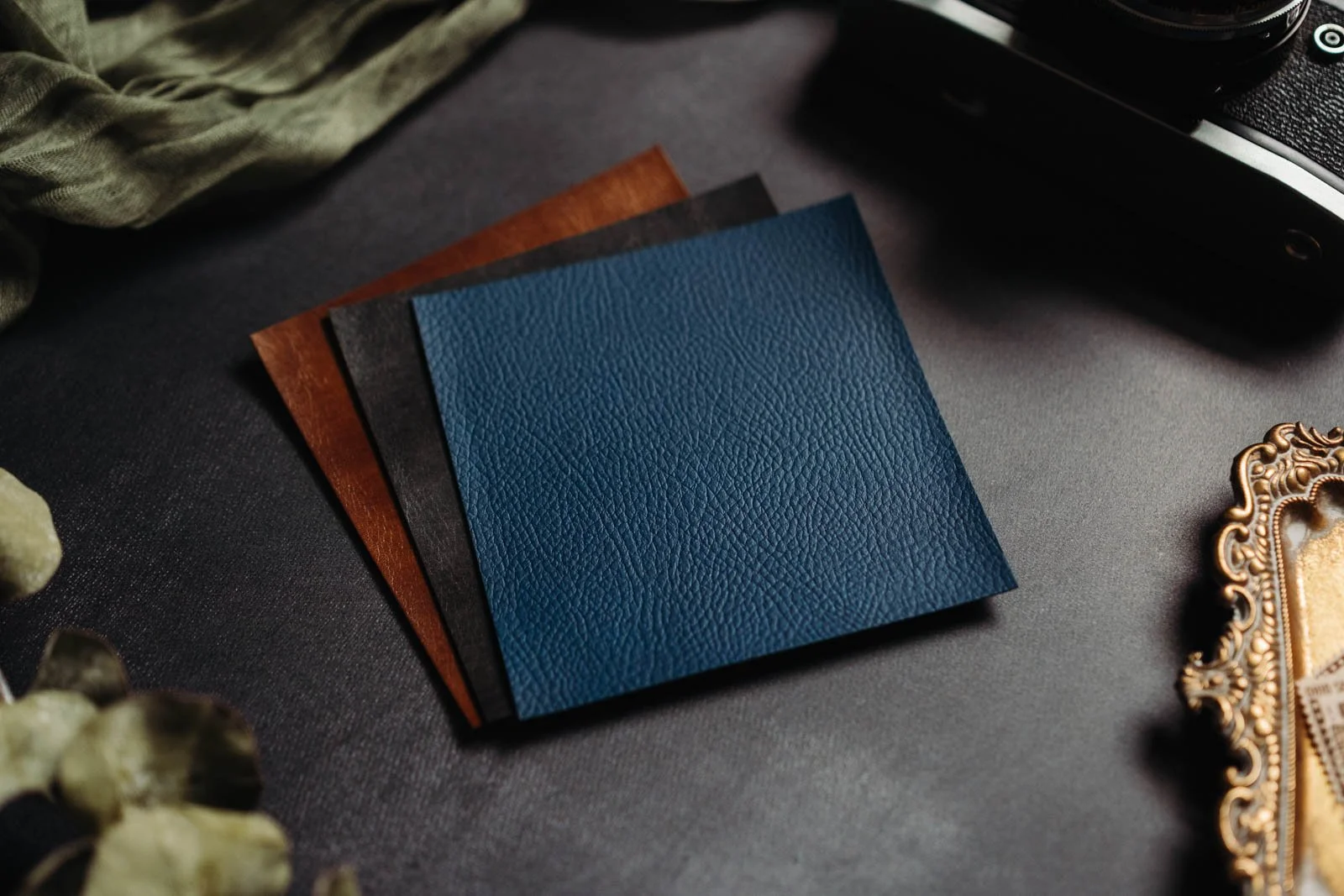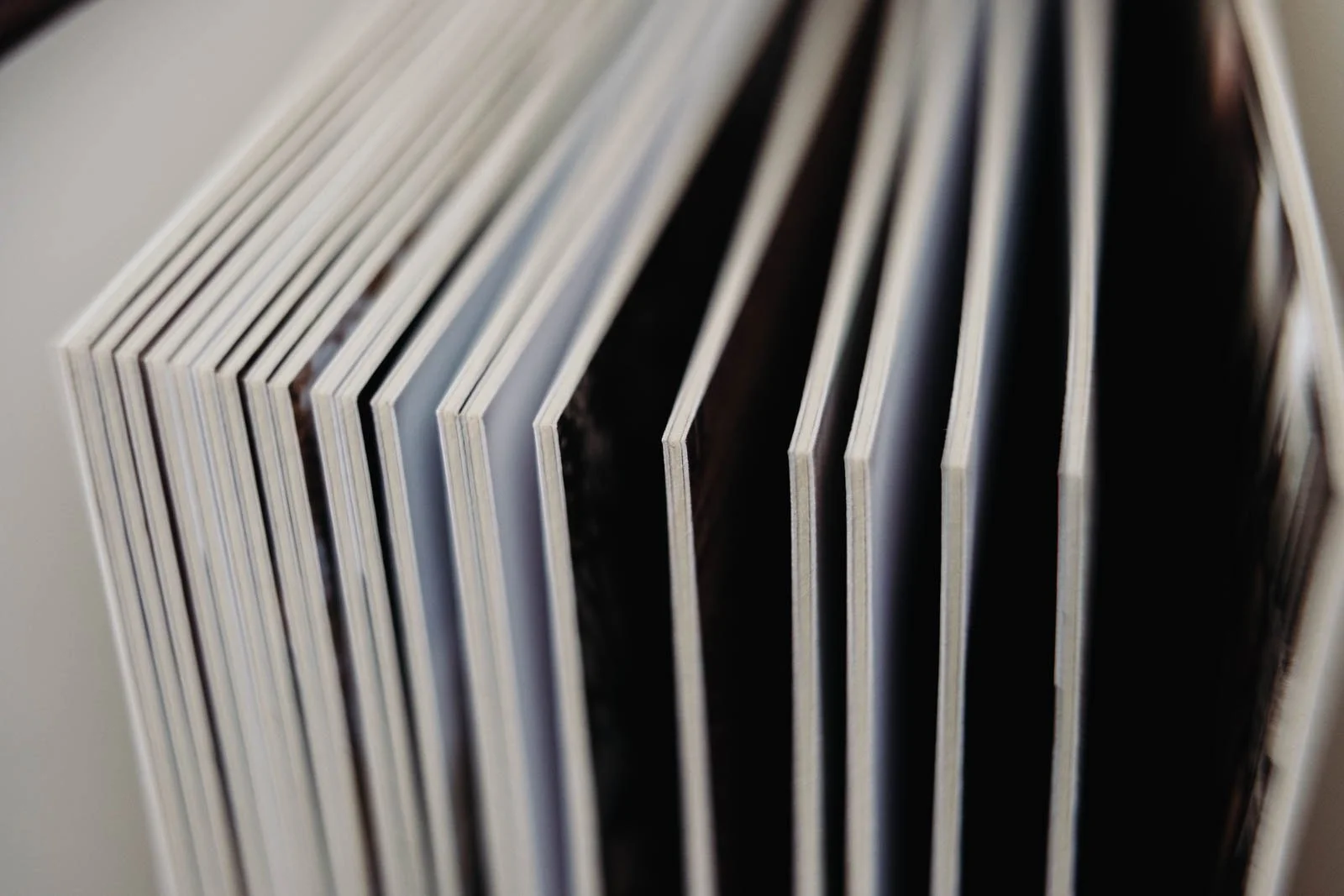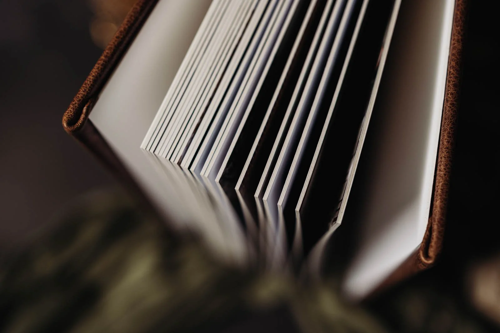 Now on to some technical stuff because these albums are simply beautiful in every aspect. Your pictures are printed on a smooth, timeless, archival paper. But honestly, the quality and beauty goes beyond what is printed on the inside pages! For the cover of your album, you’ll choose between a genuine Italian full grade leather or a linen made of a beautiful textile blend. We also have a vegan leather available! Basically, these album options are ** chef’s kiss **. Truly make your album your own by adding a foil stamp or debossed line of text on the cover! There are so many options available to create something that matches your personal style.